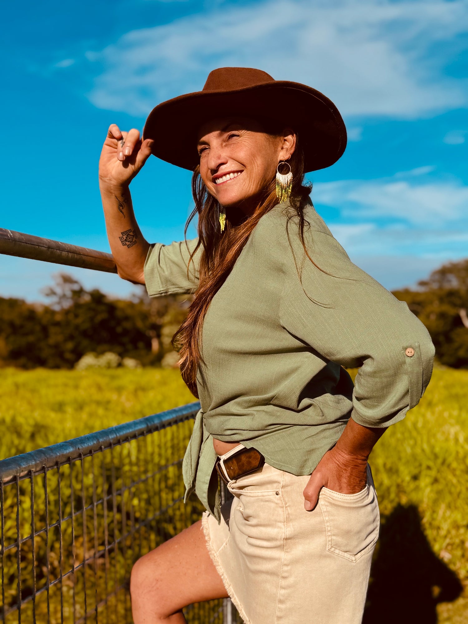 A super versatile shirt, 100% linen this is a one sized buttoned down with adjustable roll up sleeves, is perfect to wear it as a cover up over a bathing suit or as a long shirt, tie it, tuck it in or let it loose either way you will love it.